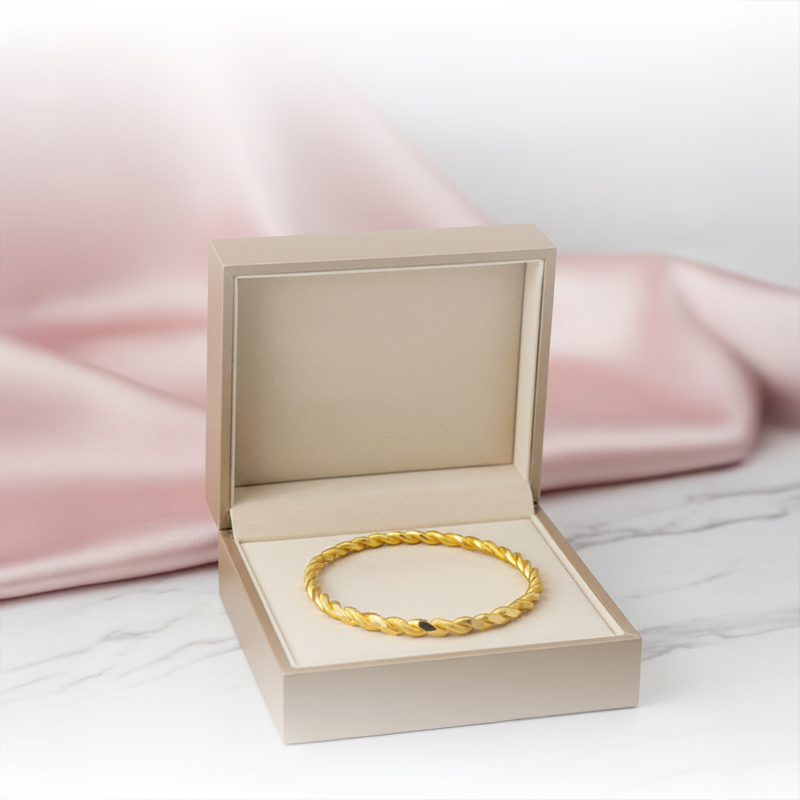 Zarafeti ve ışıltıyı bir araya getiren bu burma altın bilezik, klasik tasarımıyla her dönemin favorisi olmaya devam ediyor. 22 ayar saf altından özenle üretilen model, hem günlük kullanımda hem de özel günlerde şıklığınızı tamamlayan ideal bir aksesuardır. El işçiliği detayları sayesinde ışığı her açıdan kusursuz bir şekilde yansıtır.