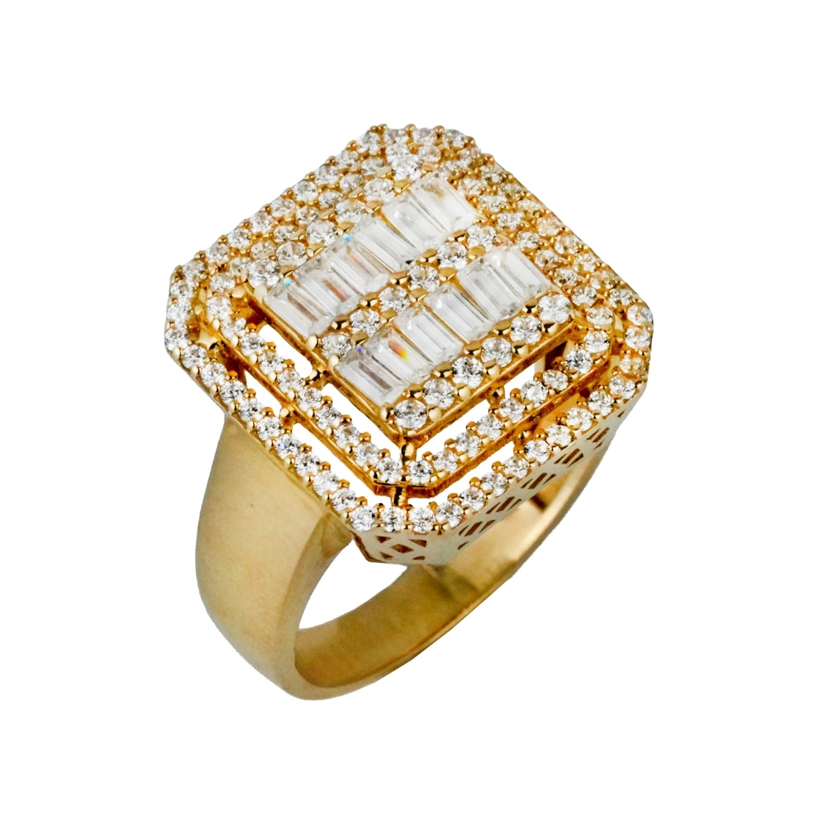 Göz alıcı büyük baget taşıyla dikkat çeken Büyük Taşlı Baget Altın Yüzük, zarif ve iddialı bir stil sunar. Baget kesimin net çizgileri, yüzüğe modern ve sofistike bir görünüm kazandırır.